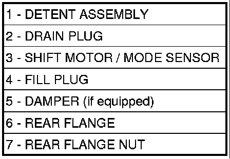 6. Fill transfer case to bottom edge of fill plug opening with MOPAR(R) ATF + 4.