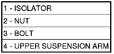 1. Position the upper suspension arm (2) in the frame rail bracket.
