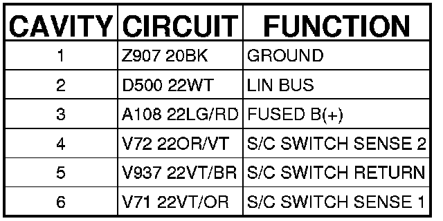 Connector C8 - (STEERING WHEEL JUMPER) 6 WAY