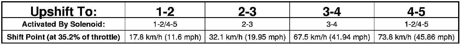 Based on how aggressive the driver is, the TCM moves up the shift so that the present gear is held a little longer before the next upshift. If the driving style is still aggressive, the shift point is modified up to ten steps. If the driving returns to normal, then the shift point modification also returns to the base position.