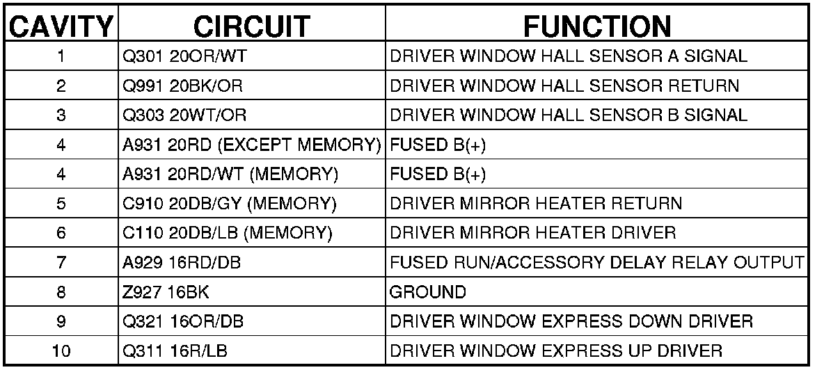 Connector C1 - (DRIVER DOOR) 10 WAY