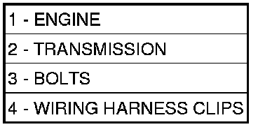 14. Install two bolts (3) to attach the transmission (2) to the engine (1).