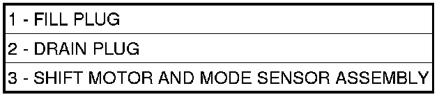 The transfer case mode sensor (3) provides the Final Drive Control Module (FDCM) feedback about the position of the transfer case. The sensor consists of a linear analog position sensor that converts the motor output shaft position into a DC signal. The sensor may rotate a full 360 degrees. The FDCM must supply 5VDC (+/- 0.5v) to the sensor whenever the FDCM is not in sleep mode and monitors the shift motor position. The sensor position is monitored when the ignition is in the RUN position and for 10 seconds after the ignition is shifted to the OFF position. The sensor is mechanically linked to the shaft of the cam which allows the transfer case to shift. The mode sensor will draw less than 20 mA of current during operation.