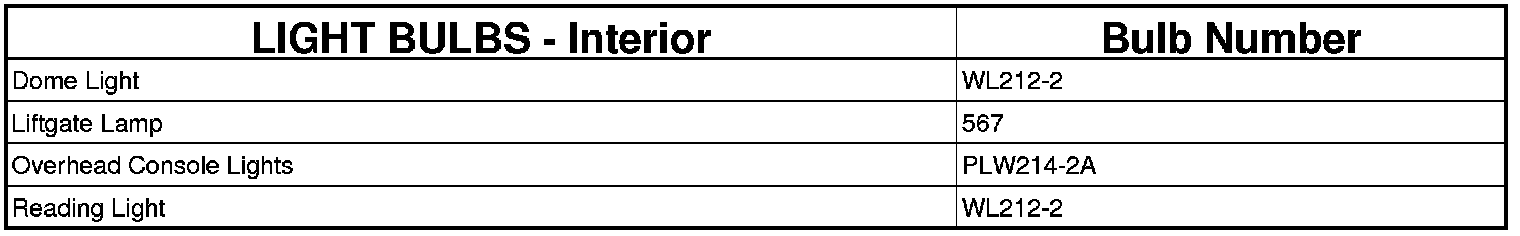 REPLACEMENT LIGHT BULBS - INTERIOR