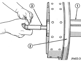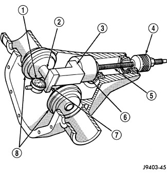 3. Loosen left-side adjuster and tighten right-side threaded adjuster with Wrench C-4164 (3) to obtain a backlash of 0.076 - 0.102 mm (0.003 - 0.004 in.).