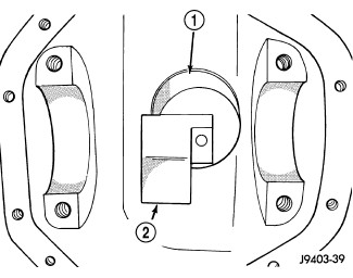 8. Slide the dial indicator probe across the gap between the pinion height block and the arbor bar (1) with the scooter block against the pinion height block. When dial probe contacts the arbor bar, the dial pointer will turn clockwise. Continue moving the dial probe to the crest of the arbor bar and record the highest reading. If the dial indicator can not achieve a zero reading, the rear bearing cup or the pinion depth gauge set is not installed correctly.