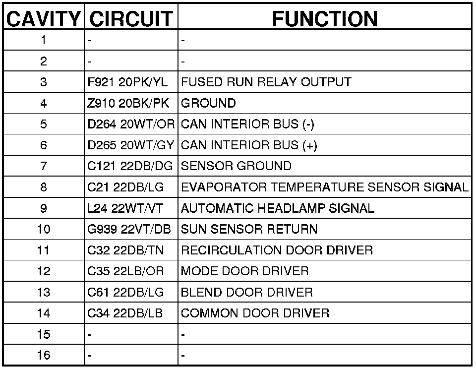 A/C-Heater Control C1 (MTC) (Instrument Panel) 16 Way