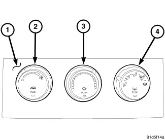 - a rotary control for mode control of the discharged air (4). This control also contains a push button function for turning the rear window defogger system on and off. The control contains an indicator lamp that illuminates when the rear window defogger system is in operation.