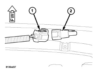 3. Connect the wire harness connector (1) to the ambient temperature sensor (2).
