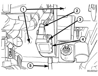 1. Depress and hold the brake pedal (5) in the depressed position.