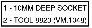 3. Determine if the end of generator shaft is hex shaped or is splined. If hex is used, insert a 10MM deep socket (1) into the tool 8823 (VM.1048) or.