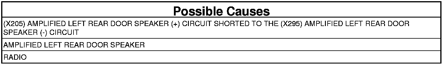 - Repair the (X205) Amplified Left Rear Door Speaker (+) circuit, and the (X295) Amplified Left Rear Door Speaker (-) circuit for a short together.