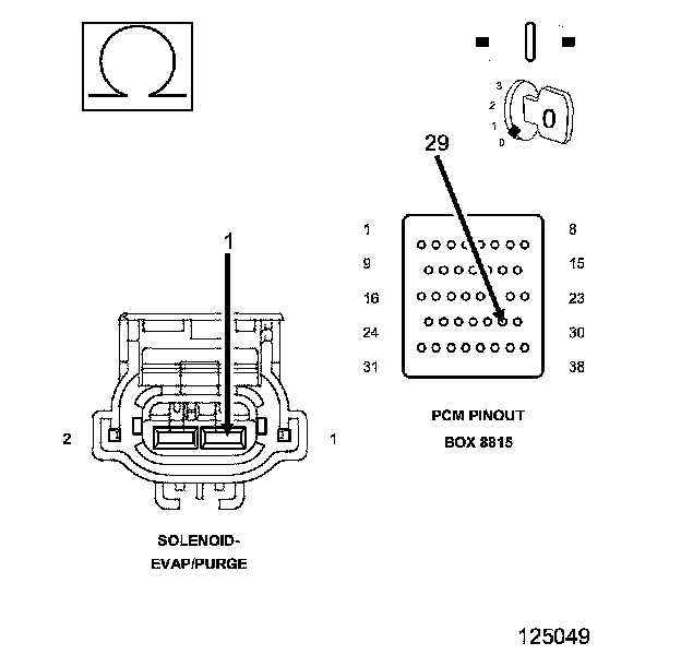 - Verify that there is good pin to terminal contact in the Evap Solenoid and the Powertrain Control Module connectors. Replace the Evap Purge Solenoid if no problems were found in the connectors.