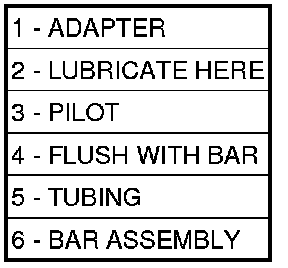 8. Turn the yoke screw (1) in until the adaptor is squarely seated on the tool bar (6).