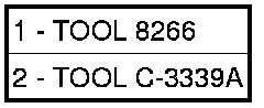 8. Using Adapter 8266-1 from End-Play Tool Set 8266 (1) and Dial Indicator C-3339A (2), measure and record the input shaft end-play.