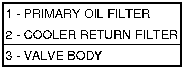 5. Remove the input (3), output (1), and line pressure sensors (2) from the transmission case.