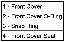 17. Remove the outer snap-ring (3) securing the transmission front cover (1) into the transmission case.