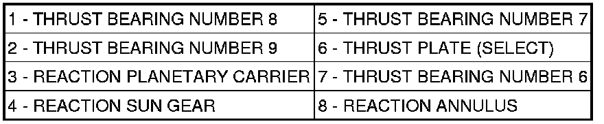 28. Remove the rear selective thrust plate (6) and number 6 thrust bearing (7) from the reaction annulus (8).