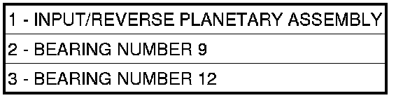 38. Remove the number 12 thrust bearing (3) from the input/reverse planetary assembly (1).