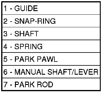 42. Remove the park rod guide snap-ring (2).