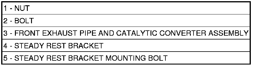 1. Position steady rest bracket (4) onto the front exhaust pipe/catalytic converter assembly (3).