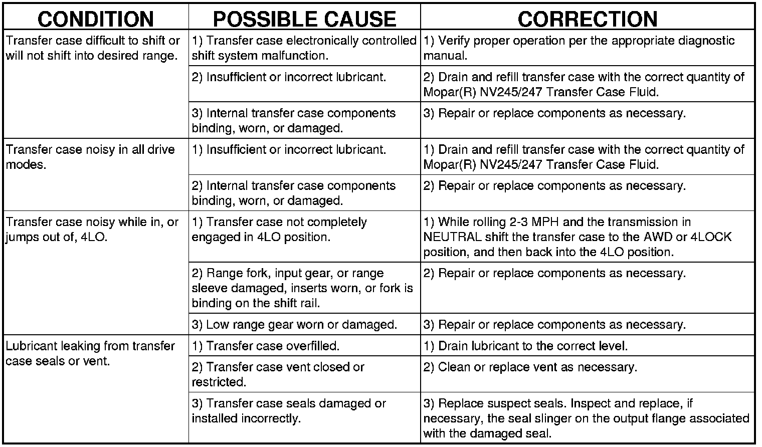 Transfer Case: Testing and Inspection