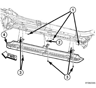 2. Install the running board (4) and the nut (2) to the vehicle.