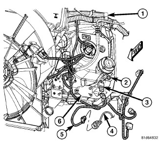 3. Reconnect the jumper wire harness (5) to the right or left front impact sensor connector receptacle or to the body wire harness (4).