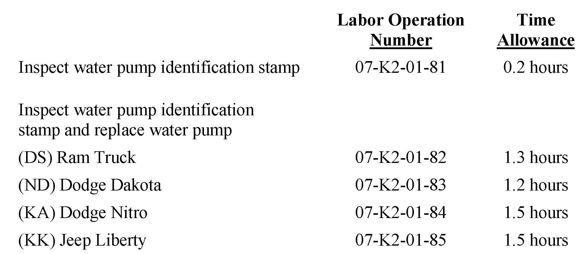 The water pump identification stamp must be inspected. Pumps found with a "W" identification stamp must be replaced.