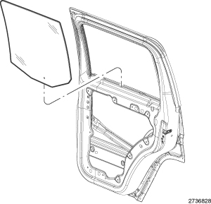 5. Install the rear door glass to the window opening in the door, Rear Door Glass - Installation.
