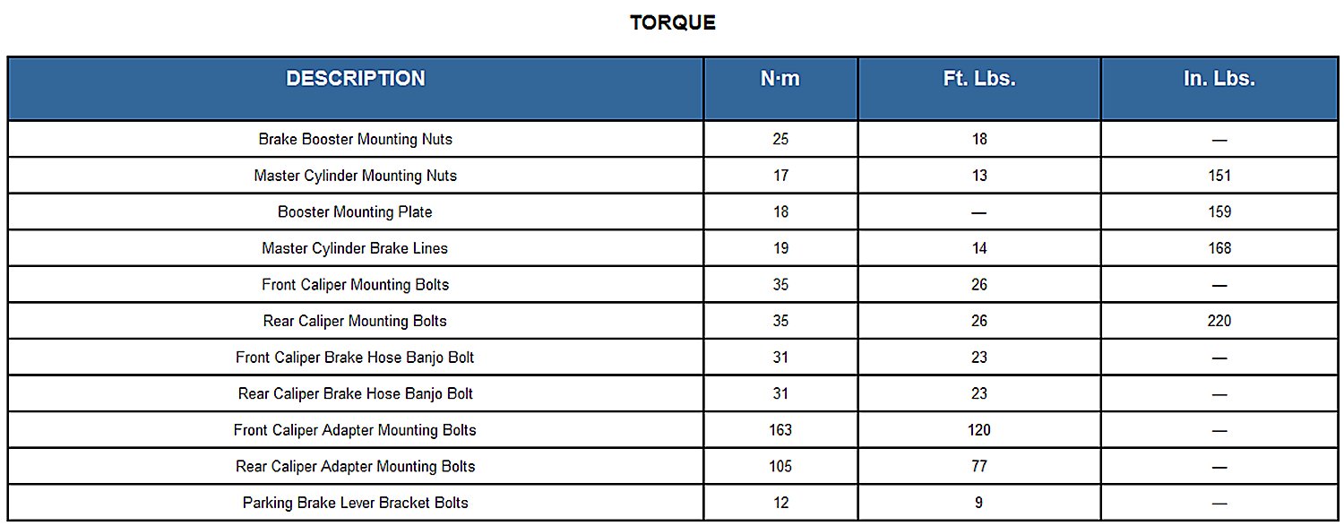 Torque Specifications: