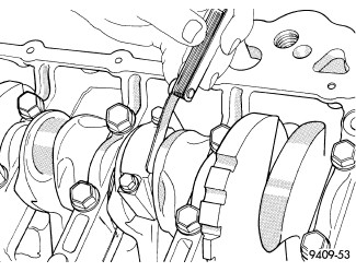 13. Tighten the connecting rod bolts using the 2 step torque-turn method. Tighten according to the following values:CAUTION: Do not use a torque wrench for the second step.