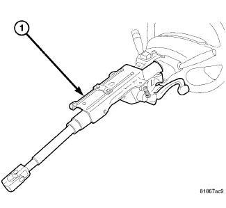 This vehicle is equipped with a tilt type steering column (1). The steering column is designed to be serviced only as complete assembly if an internal component is found to be defective. The shaft, bearings and intermediate shaft are all serviced with the column.