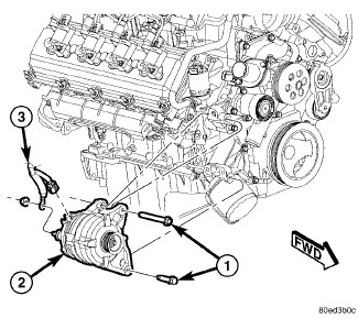 3. Install the B+ terminal eyelet to the generator output stud.Tighten the mounting nut to 12 Nm (108 in. lbs.).