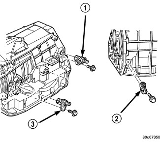 2. Install the bolt to hold the line pressure sensor (2) into the transmission case. Tighten the bolt to 12 Nm (105 in.lbs.).