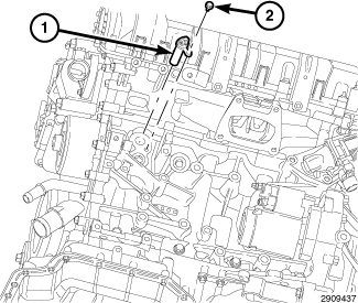 3. With block heater seated, tighten screw (2) to 12N.M (106 in.lbs.) to assure a positive seal.