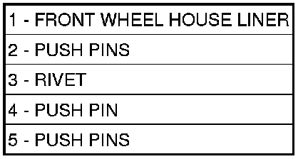 4. Remove the rivet (3) securing the wheel house liner to the lower front fascia.