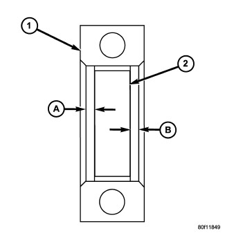 6. Remove the bearing cap and determine amount of bearing-to-journal clearance by measuring the width of compressed Plastigage (2). Refer to Engine Specifications for the proper clearance. Plastigage should indicate the same clearance across the entire width of the insert. If the clearance varies, it may be caused by either a tapered journal, bent connecting rod or foreign material trapped between the insert and cap or rod.