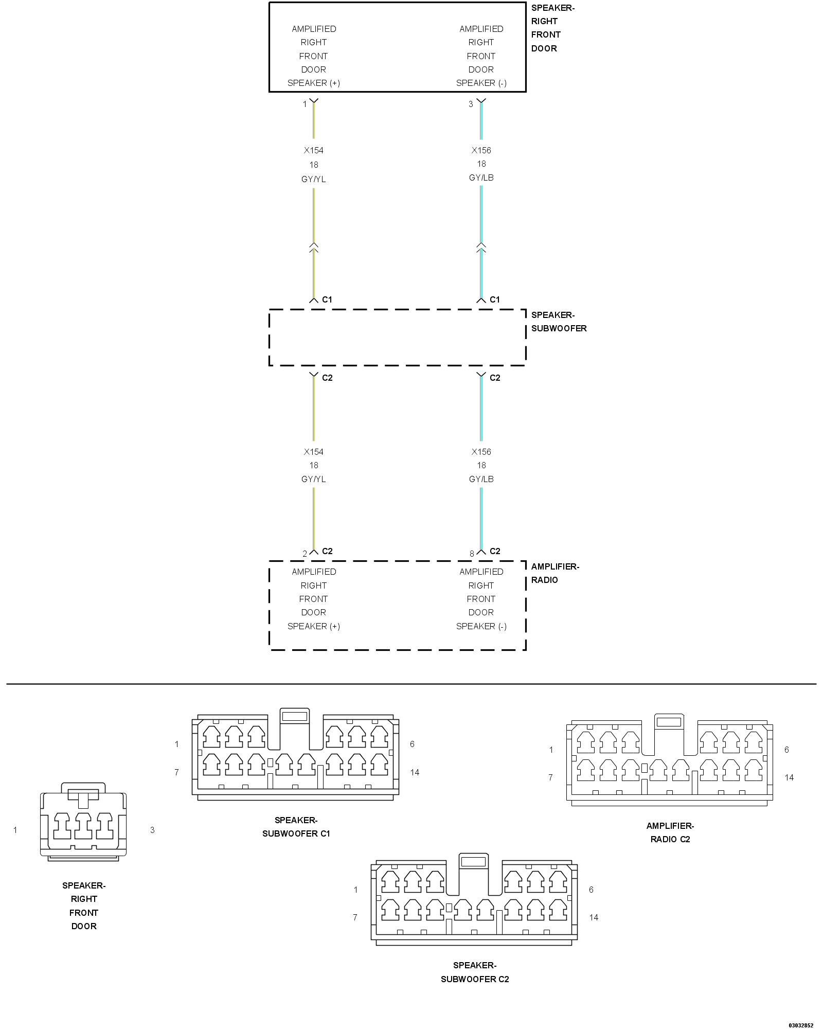- Repair the (X154) Amplified Right Front Door Speaker (+) circuit for a short to voltage.