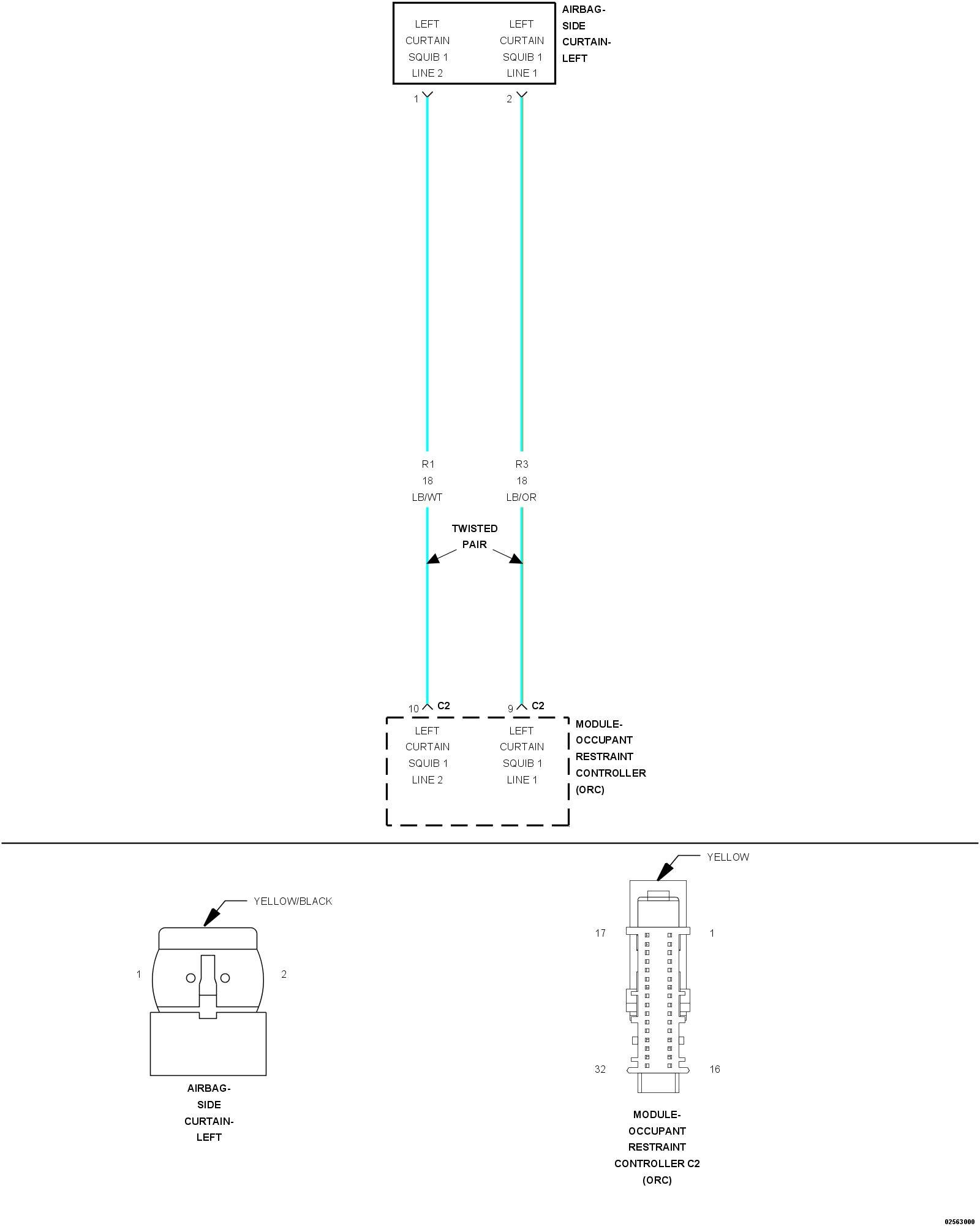 The Occupant Restraint Controller (ORC) monitors the resistance of the Left Curtain Squib 1 circuits. The ORC will set this DTC if it detects an open or high resistance on the Left Curtain Squib 1 circuits.
