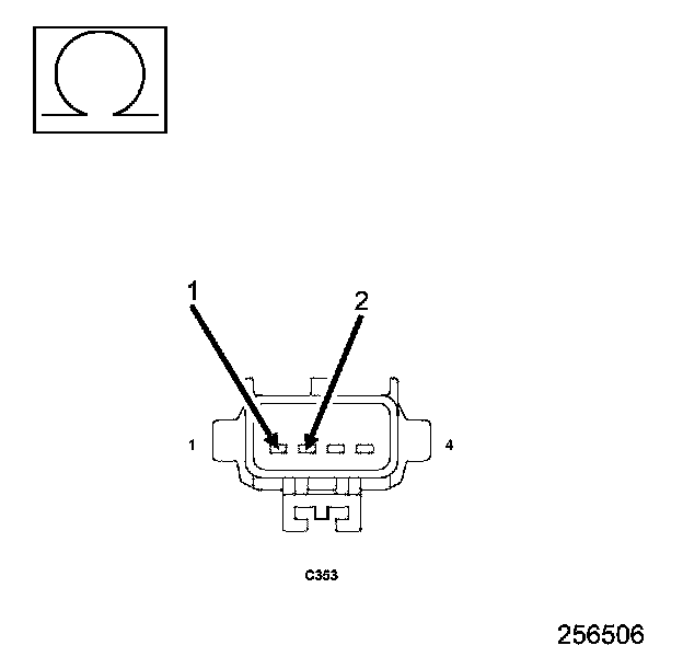 4. Measure the resistance between the (R5) Left Seat Squib 1 Line 2 circuit cavity 1 and the (R7) Left Seat Squib 1 Line 1 circuit cavity 2 at the C353 in-line connector (Body side).