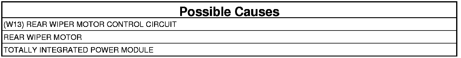 - Repair the (W13) Rear Wiper Motor Control circuit for a short to ground.