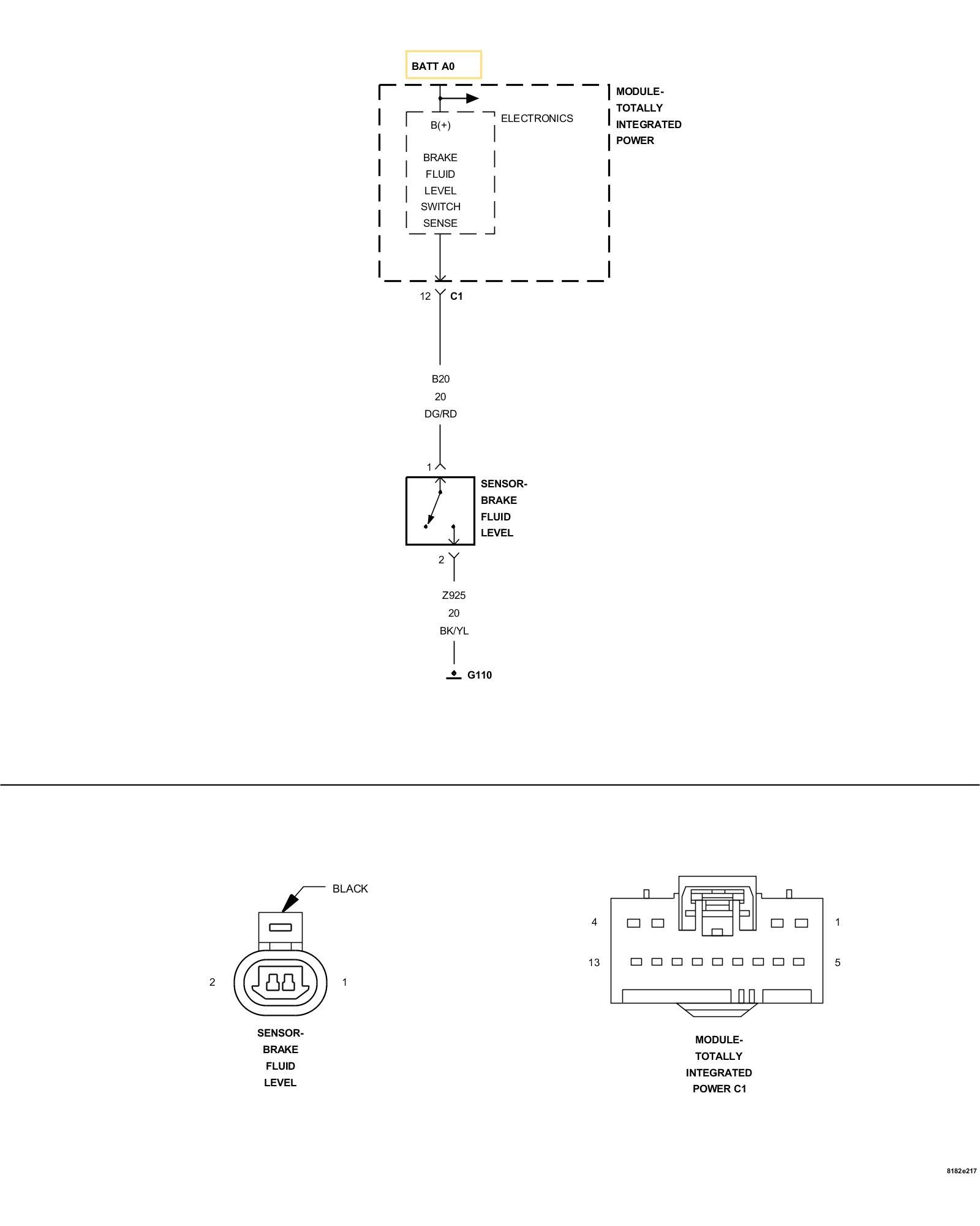 - Repair the open in the (B20) Brake Fluid Level Switch signal circuit.