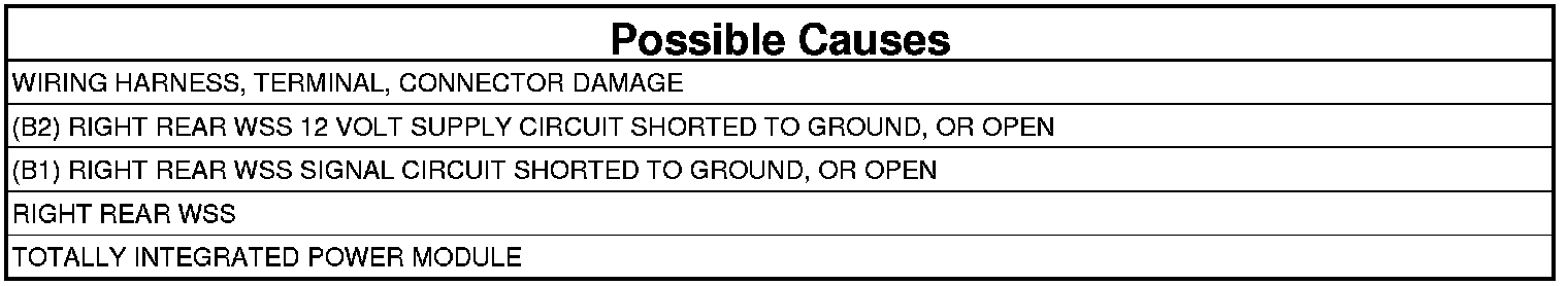 - Repair the (B1) Right Rear WSS Signal circuit for an open.