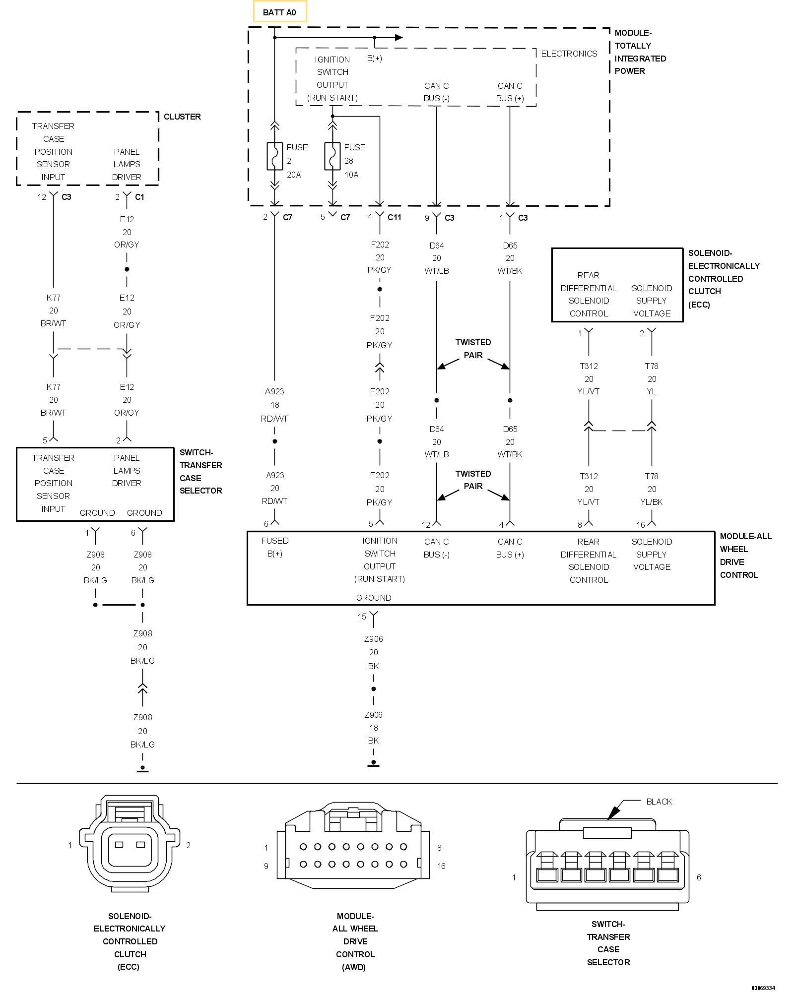 4. With a 12-volt test light connected to ground, check the (A923) Fused B(+) circuit in the AWD Control Module harness connector.