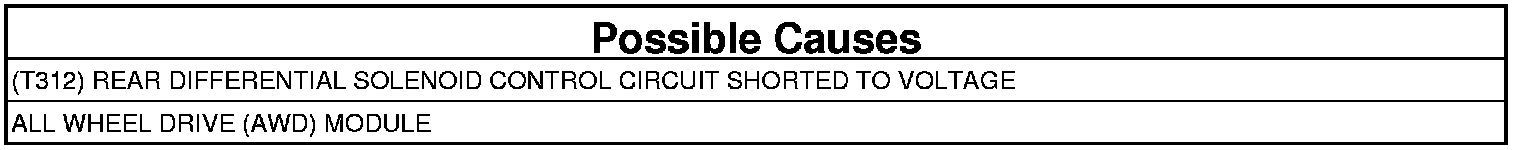 - Repair the short to voltage in the (T312) Rear Differential Solenoid Control circuit.