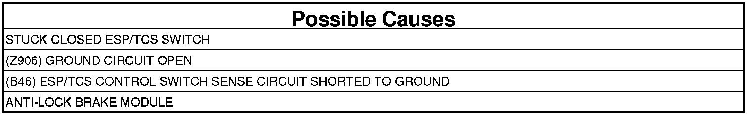 - Repair the (B46) ESP/TCS control circuit for a short to ground.