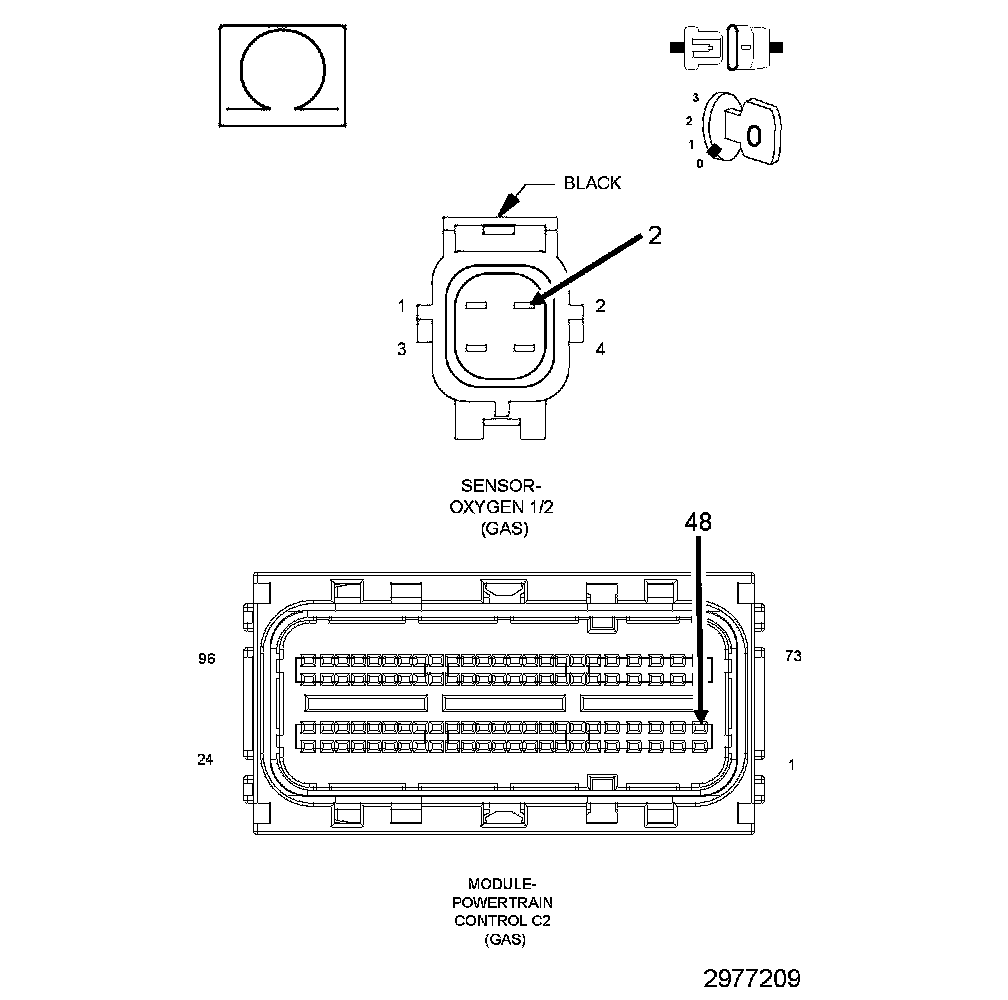 4. Using a 12-volt test light connected to ground, check the (K299) O2 1/2 Heater Control circuit in the Oxygen Sensor 1/2 harness connector.