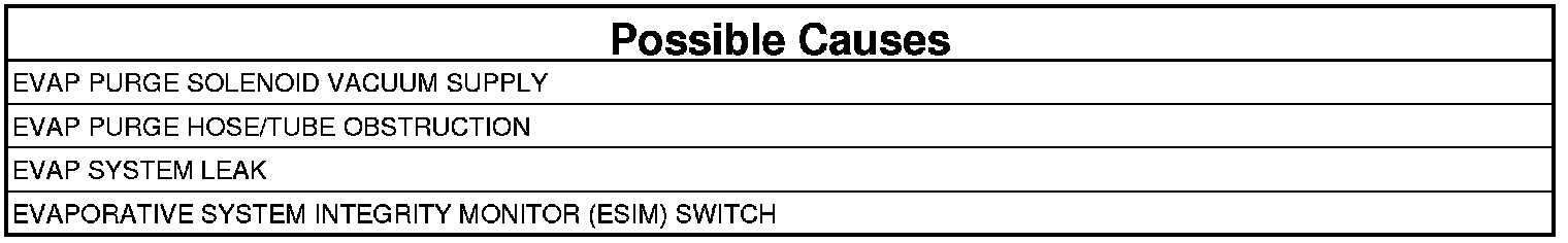 The Evap Purge Monitor tests the integrity of the hoses/tube between the throttle body/intake and the fuel tank. The monitor is a two stage test and runs only after the Evap system passes the small leak test. Stage one is non-intrusive. The Powertrain Control Module (PCM) monitors the purge vapor ratio and the Evaporative System Integrity Monitor (ESIM) Switch closed ratio. If the purge vapor ratio is above a calculated value, the monitor passes. If the ESIM switch closed ratio is greater than calculated value when purge flow is greater than a minimum value, the monitor passes. Stage two is an intrusive test and runs only if stage one does not pass. The PCM commands the purge solenoid to flow at a specified rate to force the purge vapor ratio to update. The ratio is compared to a calibrated specification. If it is less than specified, a one trip failure is recorded. This test can detect if the purge hose is off, obstructed, or the purge valve is not operational.