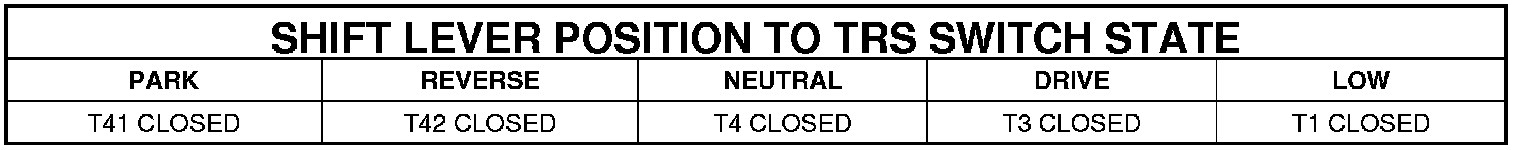 NOTE: Use the above chart to identify which sense circuit should be closed in each shift lever position.